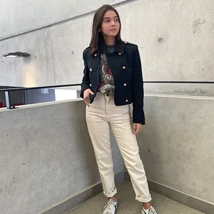 Jeans de mezclilla de algodón cruda, elasticada, tiro alto y muy cómodo. Tiene un calce espectacular y la mezclilla es blandita, no se entierra.